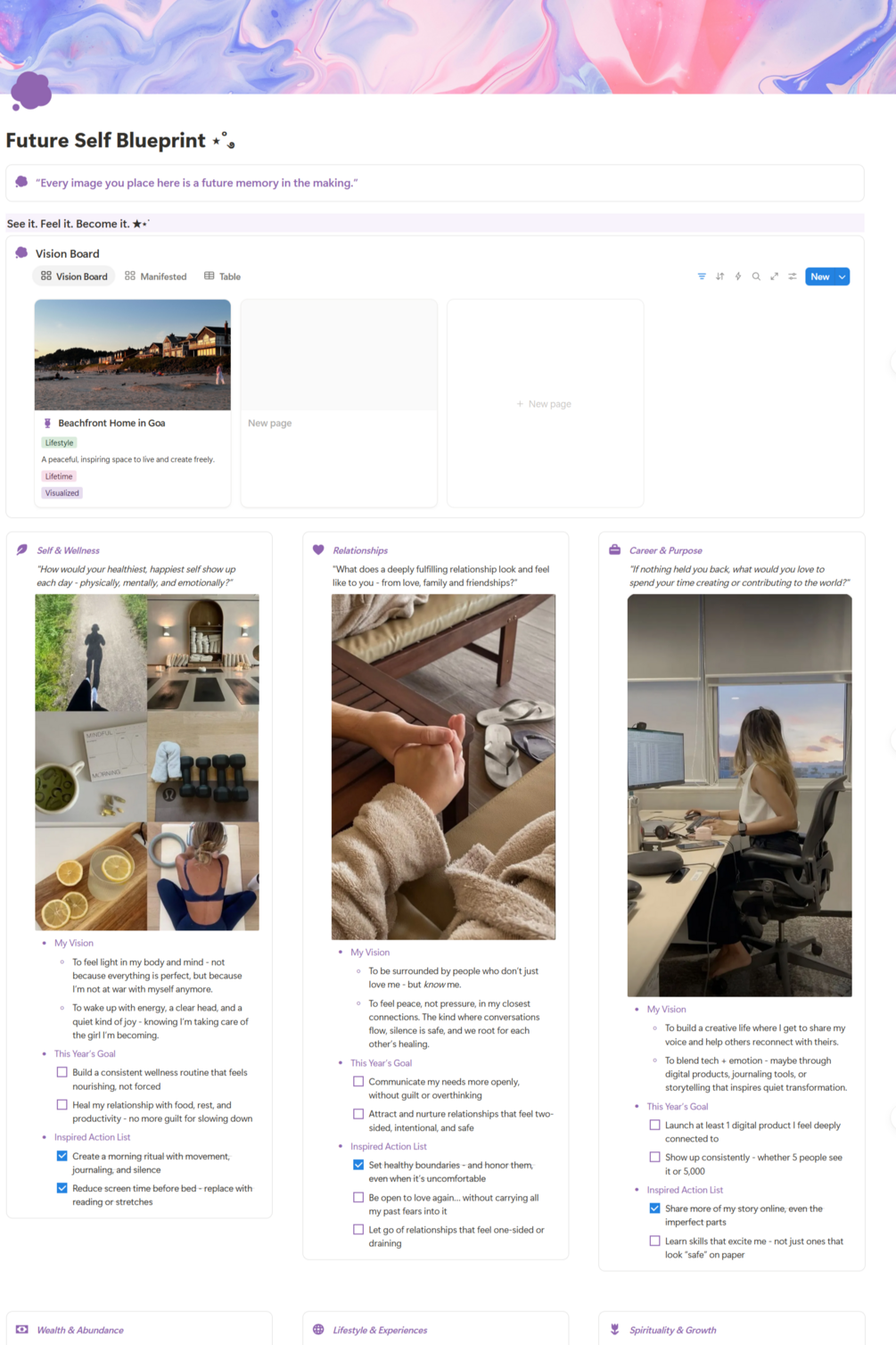 Turn your thoughts into reality with this all-in-one Notion system for journaling, goal setting, and manifestation.